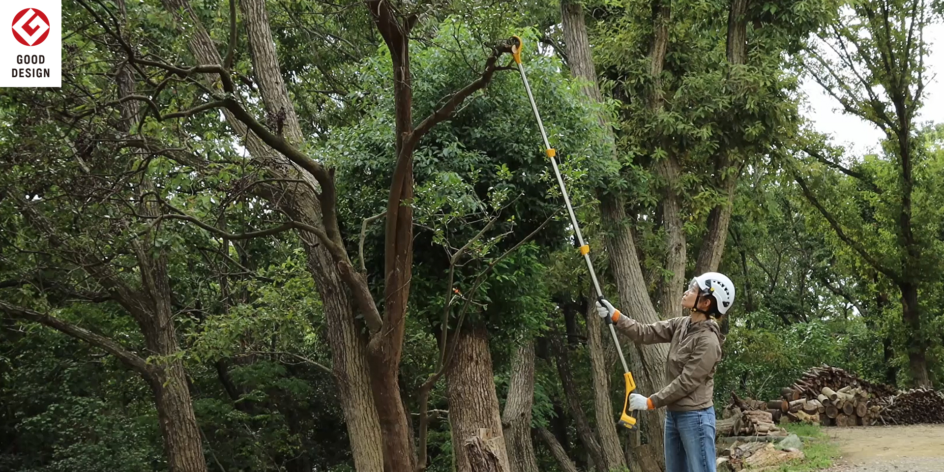 高い場所の太い枝木を軽くカットできます。