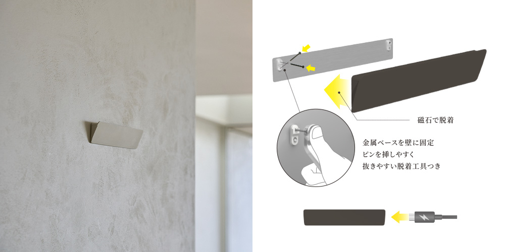 本体は磁石で脱着可能。充電時もサッと取り外すことができます。