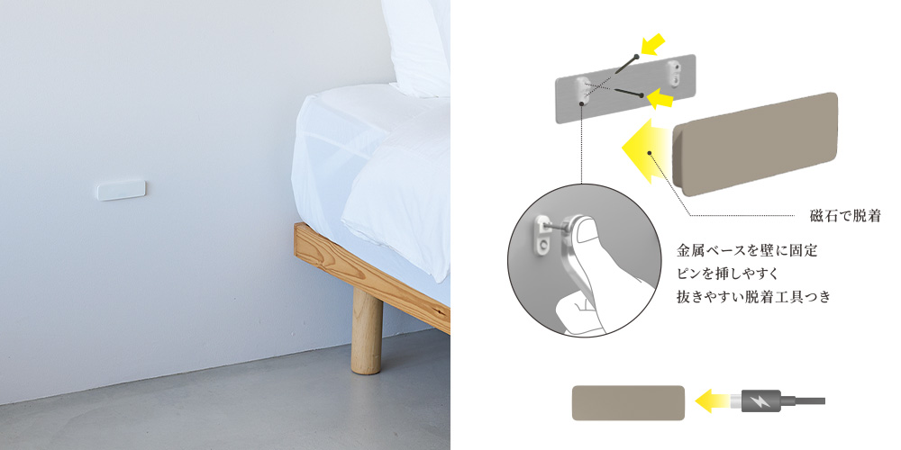 本体は磁石で脱着可能。充電時もサッと取り外すことができます。