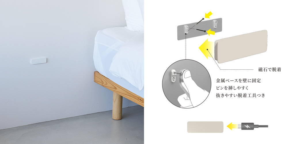 本体は磁石で脱着可能。充電時もサッと取り外すことができます。