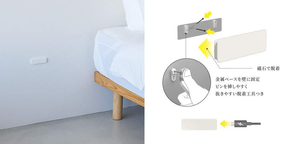 本体は磁石で脱着可能。充電時もサッと取り外すことができます。