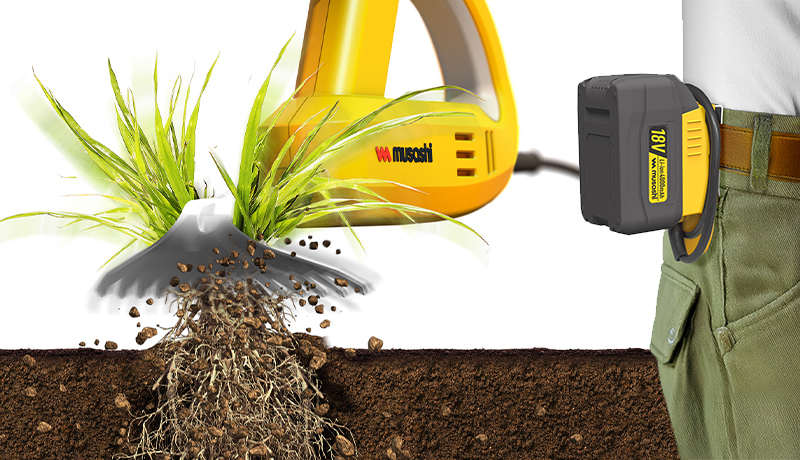 ワイド刃で除草力UP ストロング18Vバッテリー搭載