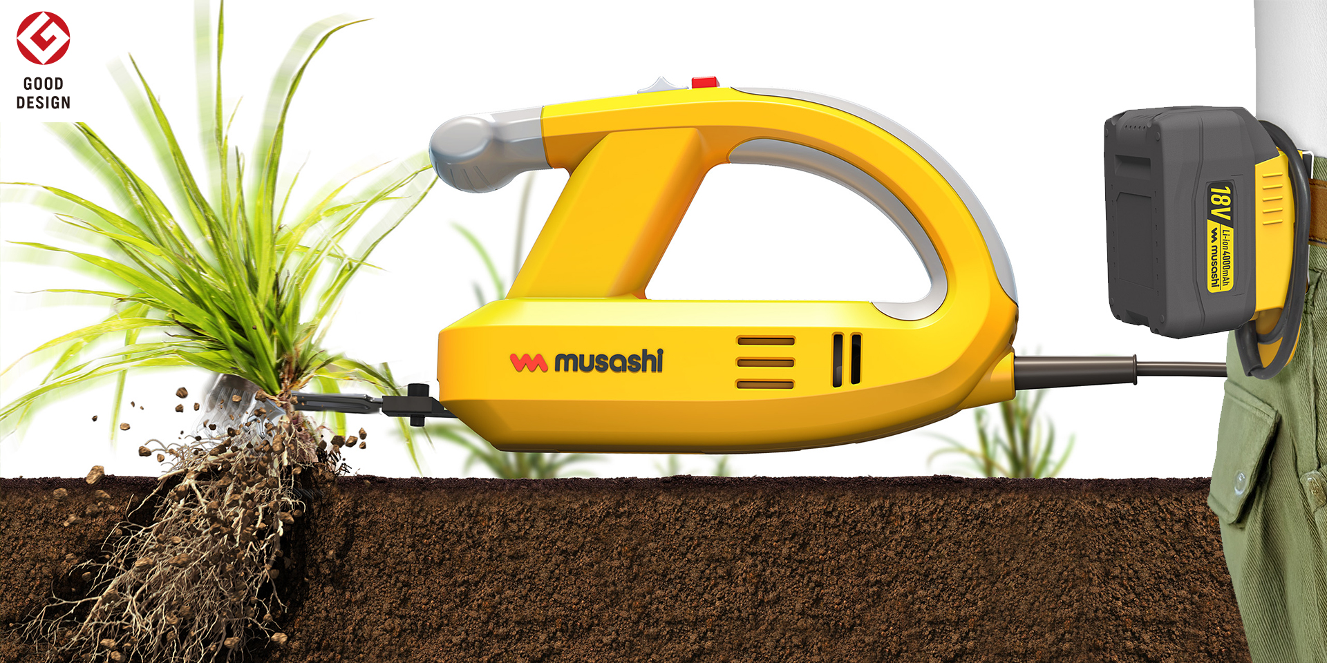 ワイド刃で除草力UP ストロング18Vバッテリー搭載