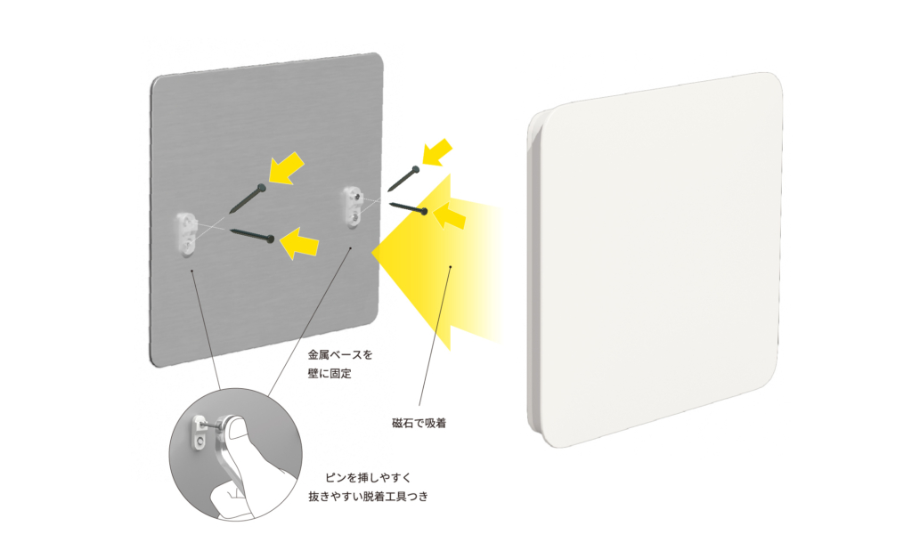 ピンで固定するため壁も傷つきにくく、簡単に設置することが可能です。