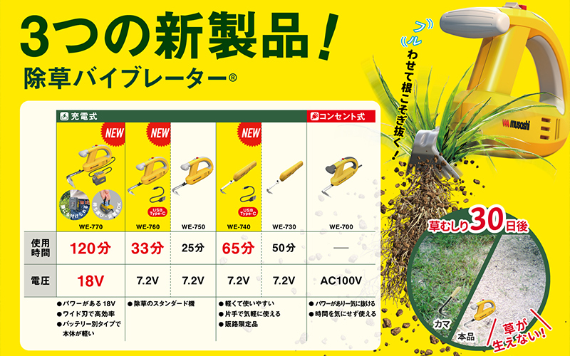 除草バイブレーターシリーズに新たに3機種登場